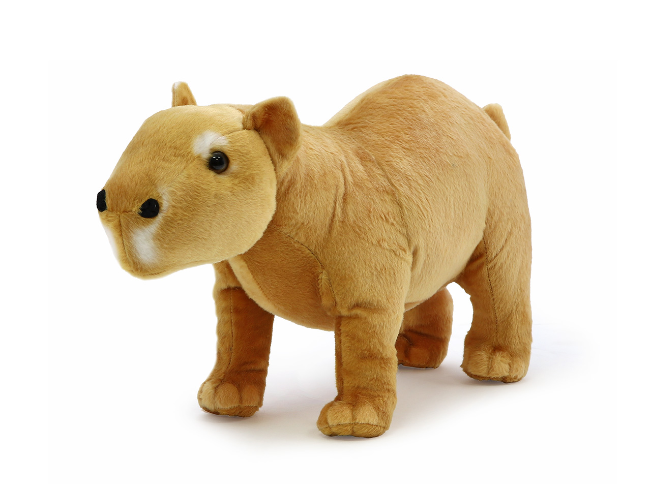 V rámci našej kolekcie andos Plyšová zoo prinášame deťom plyšové zvieratká ako živé , a to aj tie menej známe. Svet zvierat je neskutočne rozmanitý a my chceme dať deťom možnosť ho spoznať skutočne zblízka už od najútlejšieho veku. Naša plyšová kapybara vyzerá úplne realisticky , roztomilo nemotorné telesné proporcie podčiarkujú krátke pevné nohy a osobitá hlava. Môžeme dokonca jednoznačne určiť, že sa jedná o dospelú samičku. Jej veľkosť ju priamo predurčuje na to stať sa vernou spoločníčkou svojich malých majiteľov a majiteľiek, či už na cestách alebo pri zaspávaní. Ako typické nočné zviera navyše udrží oči otvorené aj po zotmení a môže svojich pánikov strážiť pred všetkými bubákmi.