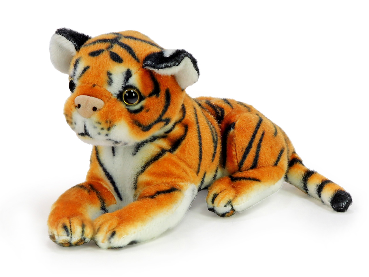 Kožúšok nášho malého plyšového tigra hrá všetkými odtieňmi ryšavé, tak ako kožuch skutočného tigra. S autentickým sfarbením srsti sme sa vyhrali, a pretože plyšák tiger je povrchovo ľahko umývateľný, farba zostane výrazná pekne dlho. Náš plyšový tigrík zachováva telesné proporcie skutočného tigrieho mačiatka, veľké uši, okrúhla hlava, zvedavé oči a malé labky zložené pod telom. Proste dokonalý kamarát na maznanie a vďaka svojej kompaktnej veľkosti aj ideálny spoločník na cesty.