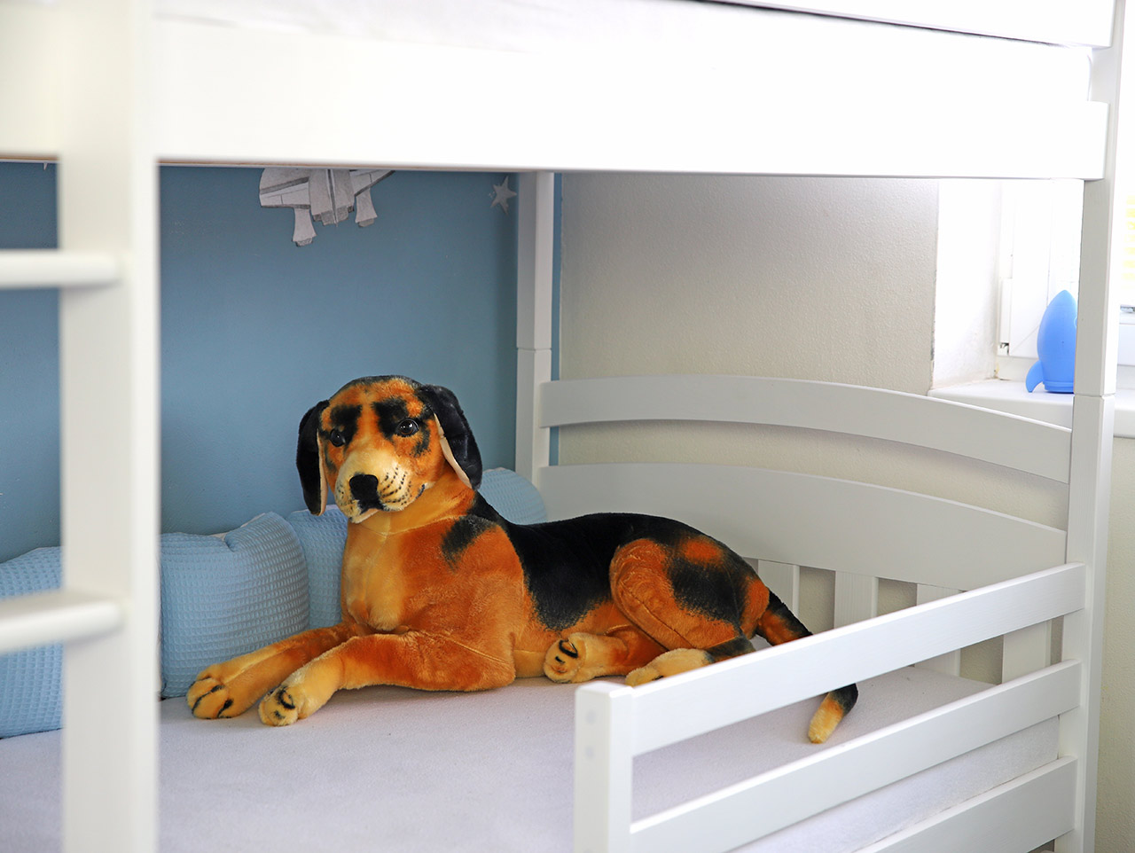 Snáď všetky malé deti milujú plyšové hračky a psy. Plyšový psí kamarát je tak skvelým darčekom pre chlapčeka aj dievčatko. Roztomilý plyšák o veľkosti 83 cm je vierohodnou napodobeninou skutočného psa. Nielen že plyšák bude pre dieťa skvelým spoločníkom pri hraní i spinkaní, ale poslúži aj ako senzačná ozdoba izbičky alebo detského kútika. Plyšové zvieratko u detí rozvíja cit a kladný vzťah k prírode. Hračka je vyrobená z kvalitného, jemného plyšu.